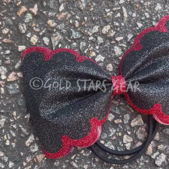Scallop glitter tailless cheer bow. Your choice of two colors. Bow is approx 4” x 5”