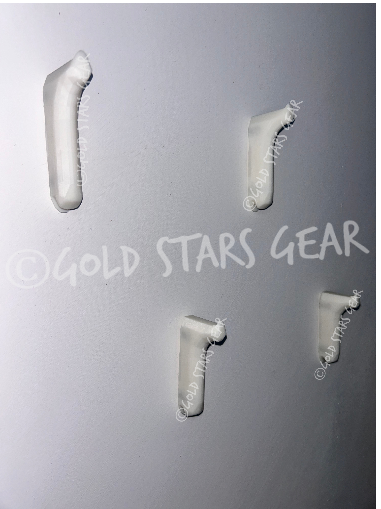 The latest idea from Gold Stars Gear - its a push-pin-supported bow holder- comes in a 4 pack! Organize your bows on any push-pin-enabled surface. These tiny but mighty bow-holders are designed to keep your bow supported to help hold its shape while not in use. There is a built-in hair tie holder, which helps keep the bow in place while sitting up on its own little mini pedestal! Default color is white.